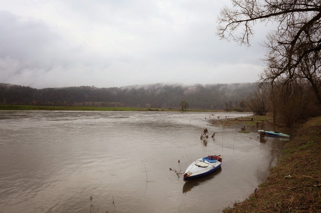 Утро началось с того, что я проснулся рано, выглянул наружу. Все вокруг мокрое, неприглядное. Зато отличное зрелище представилось на берегу, в том месте, где были оставлены на ночь лодки. Моя лодка, которую прошлой ночью мы с Гришей положили на кочку метрах в трех от кромки воды, сейчас лежала на этой самой кочке, но окруженная водой со всех сторон и от нового берега до неё было метра полтора-два. Вовина же лодка вообще уплыла ниже по течению и только по счастью на её пути оказались плотные кусты, в которых она и застряла… Поразмышляв немного на тему того, как было бы прикольно выбираться отсюда с одной лодкой, убедился, что лодки уже больше никуда не должны уплыть, оставил все как есть, чтобы остальные полюбовались зрелищем, когда проснутся…