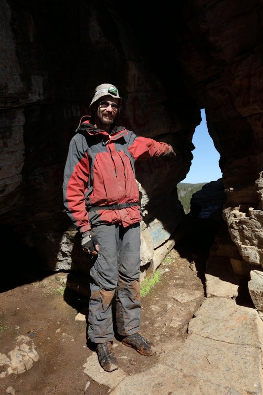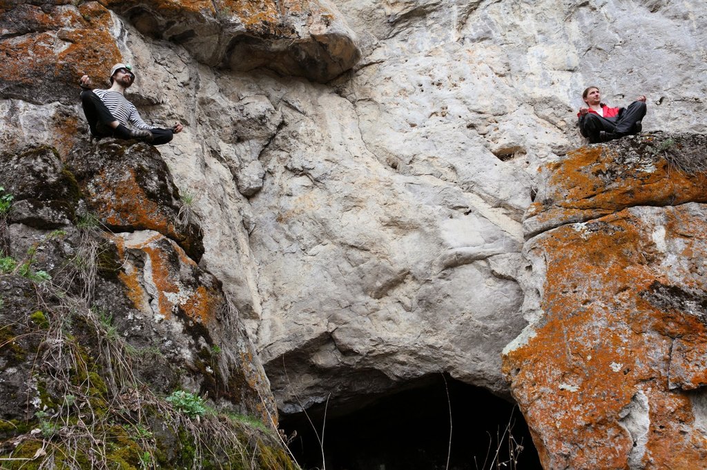 Подошли к Кочкарским пещерам. Гриша с Вовой исследовали ходы. Левый ход ведет далеко (и то, Гриша не дошёл до конца), но ход узкий.