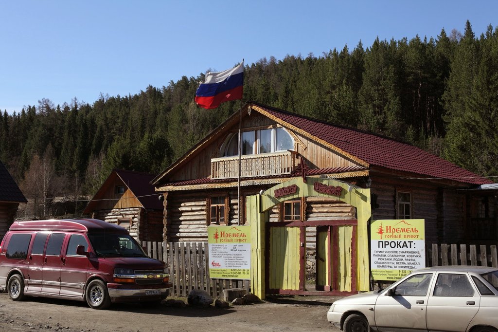 До посёлка доехали без проблем. Как и собирались, остановились на турбазе «Иремель» (второе название — «Роза ветров»). Стоимость — 150 рублей с палатки в день. В принципе, вполне можно было бы встать лагерем где-нибудь вдоль речки Тюлюк, недалеко от турбазы, но, во-первых, там уже стояло много людей, а, во-вторых, мы все же хотели все вместе пойти на гору, а оставлять вещи без присмотра не хотелось. На турбазе же нам предложили все сложить в сарай со снаряжением и никаких проблем это не вызвало.