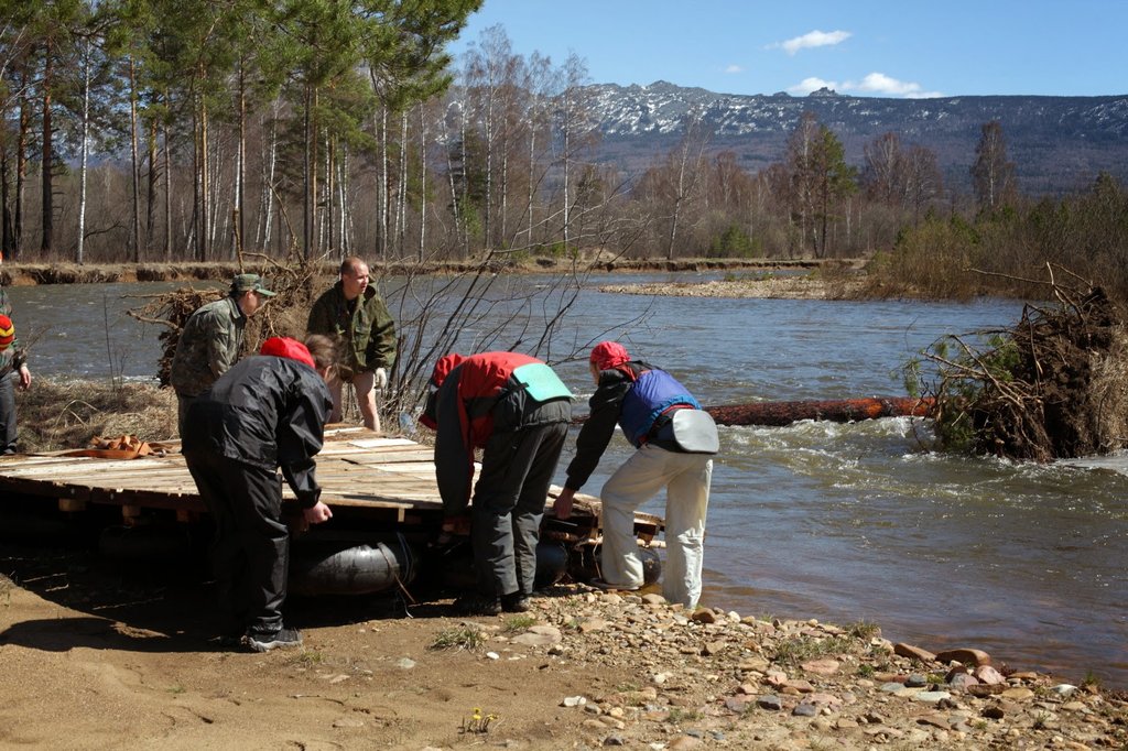 Через какое-то время мимо нас прошла команда из четырех человек на плоту из автомобильных камер (мы видели их немного раньше, в районе Кордонного, они собирались на берегу).