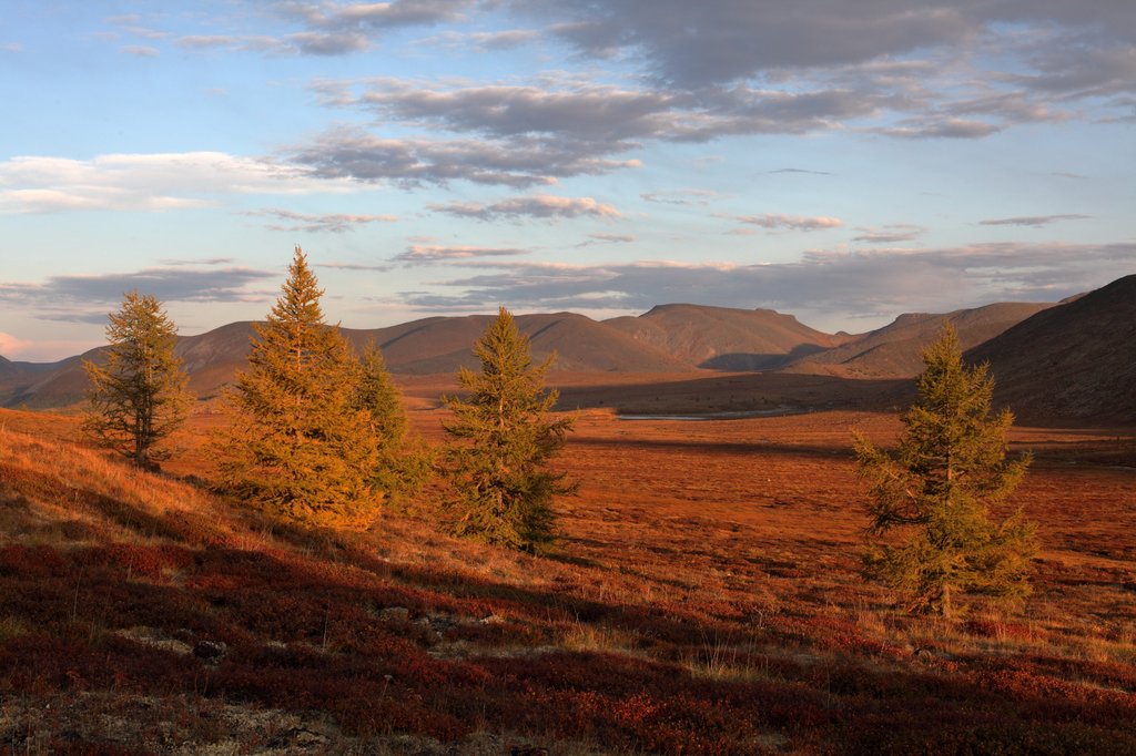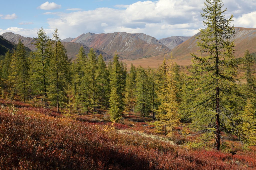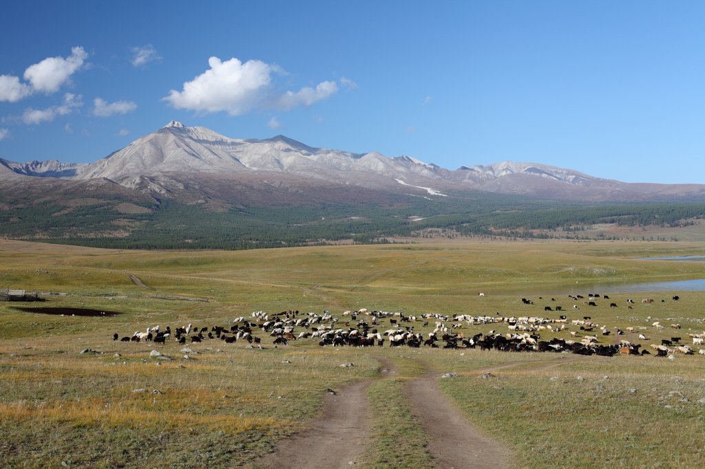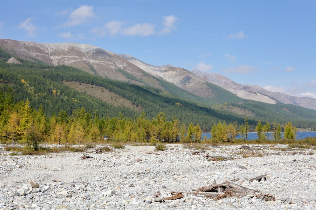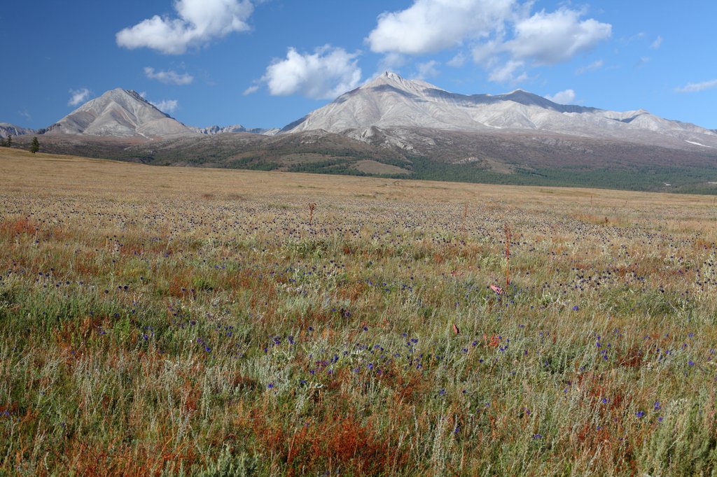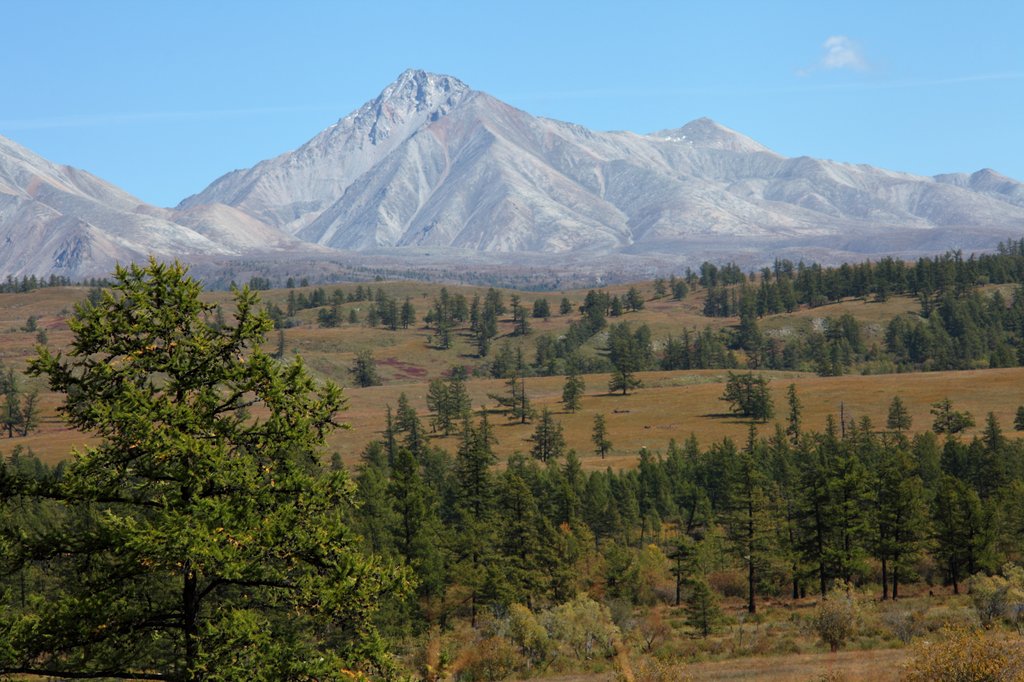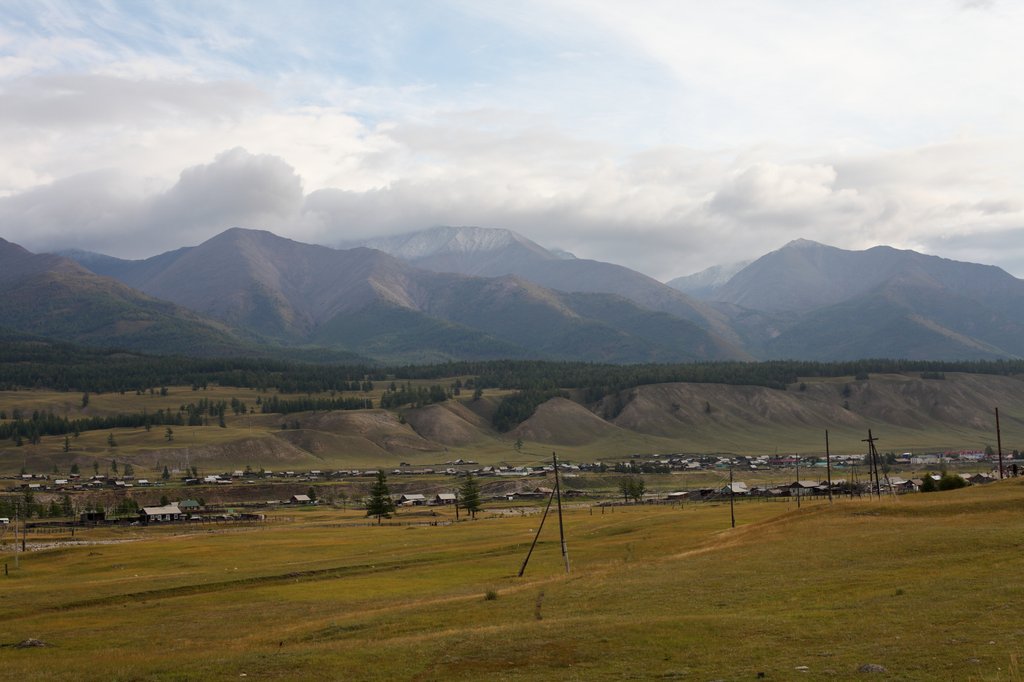 Саньжа сказал: "Хорошая примета - начинать путешествие в такую погоду". И правда, когда светит солнце, освещая далёкие горы на фоне голубого неба, то нет никаких сомнений в необходимости предстоящего пути, какие бы сложности ни ожидали впереди. Мы весело проехали посёлок и начали подниматься по долине ручья вверх, по направлению к перевалу Хавцалын.