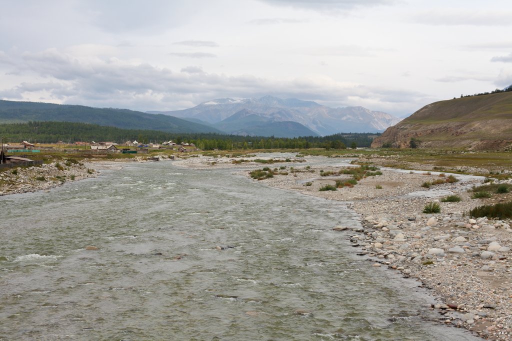 Пересекли по мосту Иркут. С моста открывается красивый вид на Большой Саянский хребет и Тункинские Гольцы.