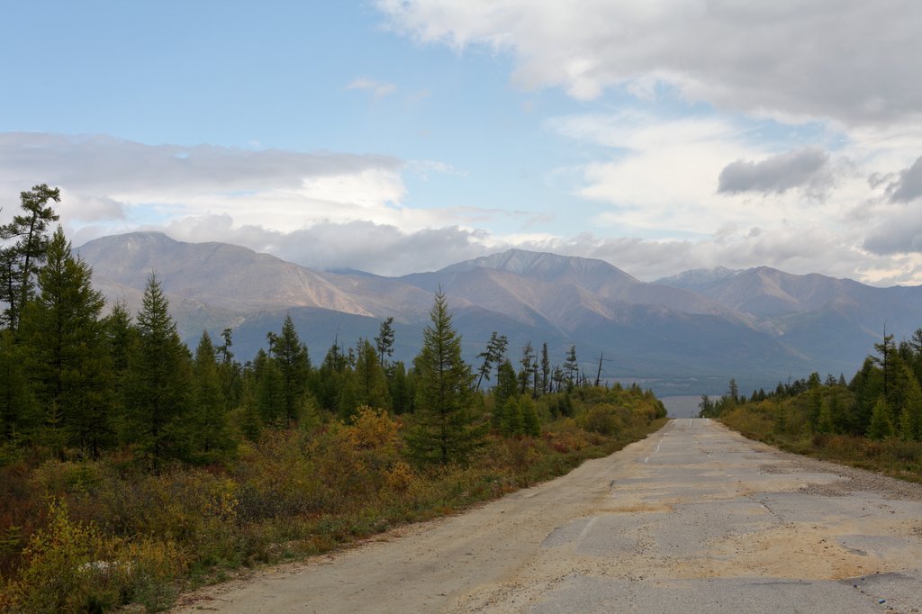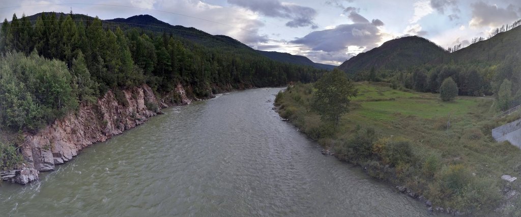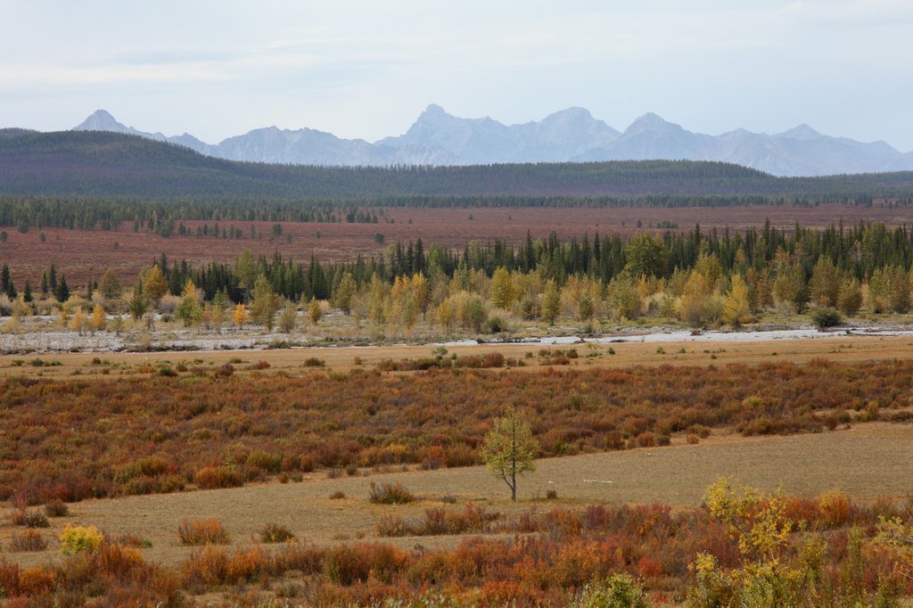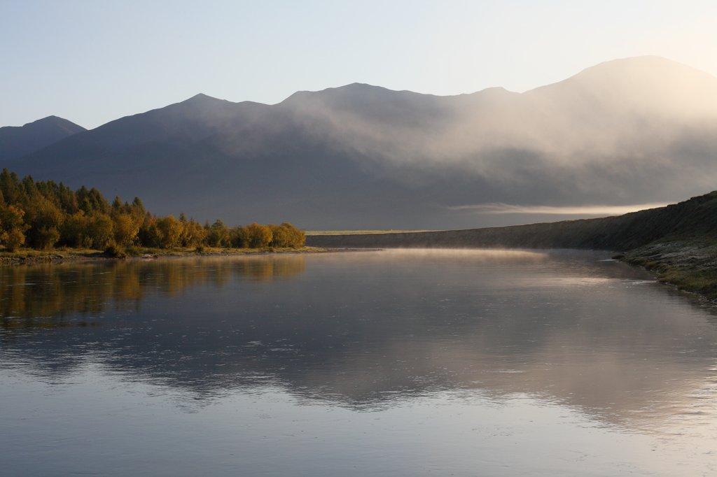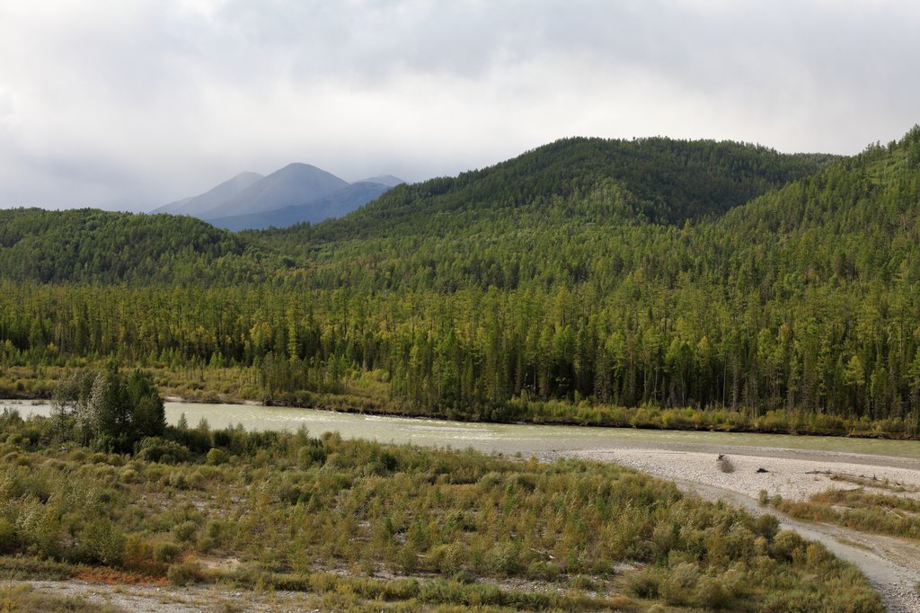 Выехали в районе 4 часов дня. План на сегодня - доехать до Монд и заночевать на турбазе. Этот участок по Тункинской долине был добавлен с целью вкатывания в маршрут, акклиматизации и, конечно, чтобы получить представление об этом уголке нашей страны. Дорога идёт вдоль реки Иркут, то приближаясь, то удаляясь от неё. Берега реки покрыты смешанным лесом с преобладанием лиственницы, окружены горами, являющимися частью Саянского хребта. Пейзаж - "типично сибирский". Природа достаточно суровая и при иной погоде могла бы выглядеть неприветливо, но дождь у нас так и не пошёл, хотя в горах, местами, явно поливало. А так - проглядывает солнышко, вершины Саян покрыты красивым туманом, весело бежит Иркут. Надо сказать, что выбор начала маршрута от Турана себя оправдал, как с технической, так и с эмоционально-визуальной точки зрения.