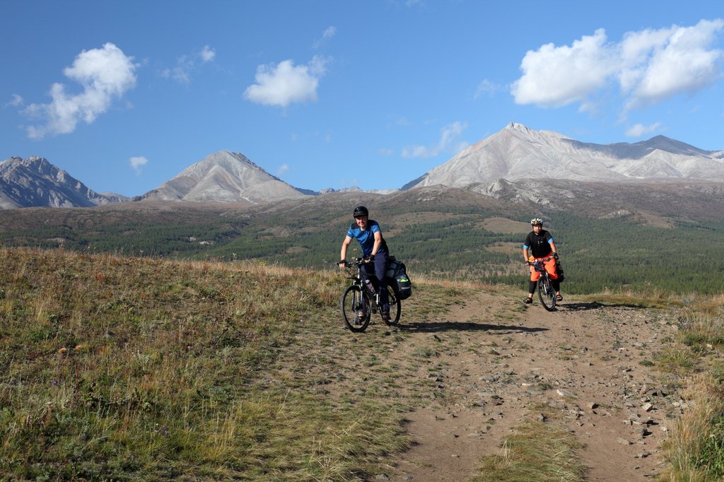 Пока мы с Лёшей поднимались на холм, Максим поджидал у дороги велосипедиста, которого заприметил на дороге впереди. Это оказался Артур из Новосибирска. И если мы только начинали наш маршрут, он свой трёхнедельный - заканчивал. Познакомились, поговорили. Нитка его маршрута - Слюдянка - Улан-Батор - Хатгал - восточный берег Хубсугула - Ханх - Монды - Слюдянка. Хороший такой маршрут.
