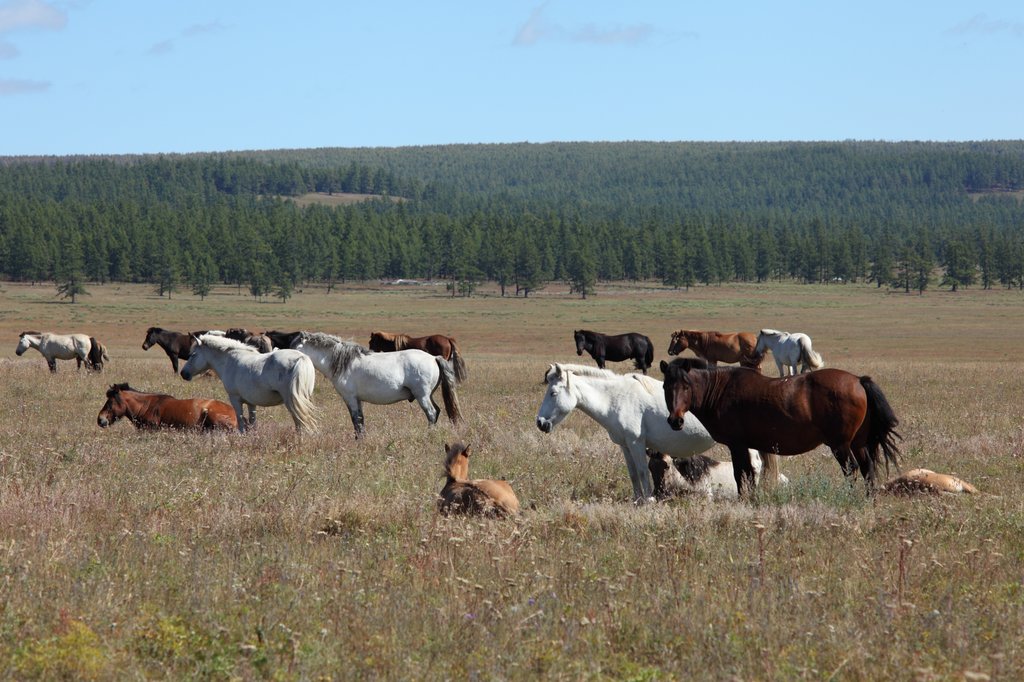 И вот мы в Монголии. От заставы вниз, через степь, спускается дорога, бегущая вдаль, к Хубсугулу. Идея, внедрившаяся в мою голову в январе, стала реальностью - впереди 10 дней по этой своеобразной и почти первозданной земле. Светит тёплое монгольское солнышко, компьютер показывает 20 градусов, настроение отличное. Мы весело скатываемся вниз.