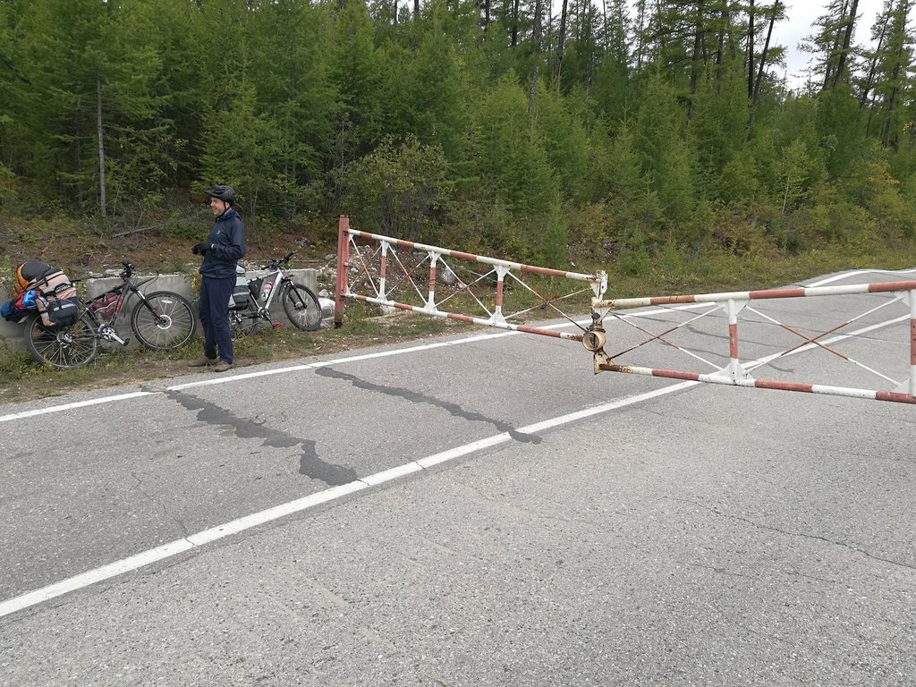 На выезде из посёлка нас догнал внедорожник, вроде как с начальником заставы, приостановился, и нам было велено закрытый шлагбаум не объезжать, а ждать открытия. Видимо, велосипедисты периодически игнорируют шлагбаум, я читал об этом в одном из отчётов.