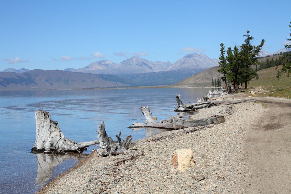 Утром погода - просто лучше не придумаешь. Абсолютно ясное небо, красивая вода Хубсугула, горы на горизонте - прекрасный день для начала путешествия.