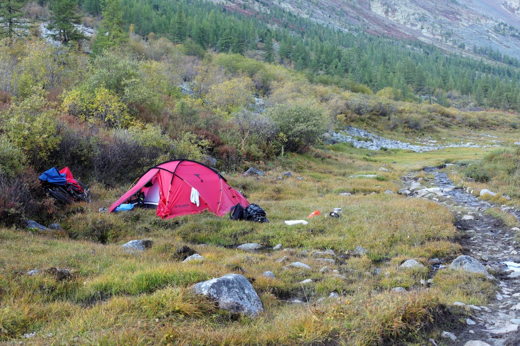 Учитывая усиливающиеся снаружи дождь и мрак, всё это казалось прекрасным. Даже мне в этот момент не улыбалось сидеть в палатке посреди степи. Мы нарубили дров, потом топили печь, ели печенье с молоком, варили баранину, чистили и ели рыбу, пили пиво. Потом баранина сварилась и мы ели ещё. Такое обжорство привело к не очень хорошим последствиям для желудков и некоторым потребовался мезим из походной аптечки.