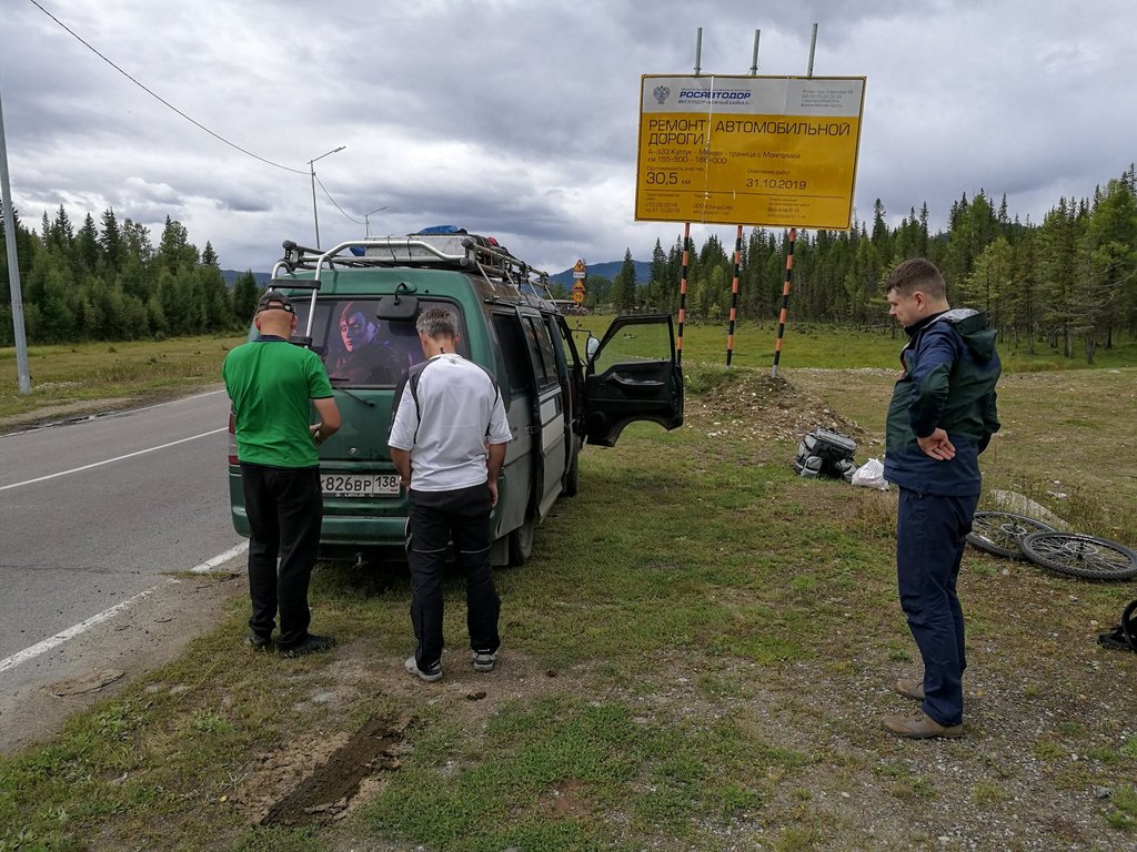 Пока мы с Лёшей поднимались на холм, Максим поджидал у дороги велосипедиста, которого заприметил на дороге впереди. Это оказался Артур из Новосибирска. И если мы только начинали наш маршрут, он свой трёхнедельный - заканчивал. Познакомились, поговорили. Нитка его маршрута - Слюдянка - Улан-Батор - Хатгал - восточный берег Хубсугула - Ханх - Монды - Слюдянка. Хороший такой маршрут.